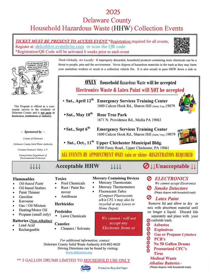 *Latex Paint is not hazardous and therefor will not be accepted at the collection events by Delaware County. Download Flyer from Delaware County PA on proper Latex Paint disposal